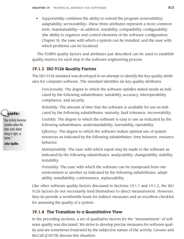 | 14 | A Especificação Suplementar inclui métricas e métodos para monitorar e avaliar continuamente o desempenho e a qualidade do sistema após a implementação? | PRESSMAN, 2014, p. 512 | Sim |
