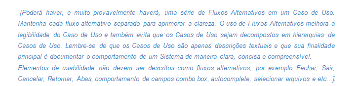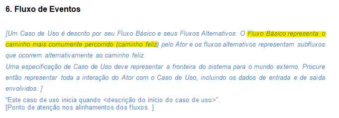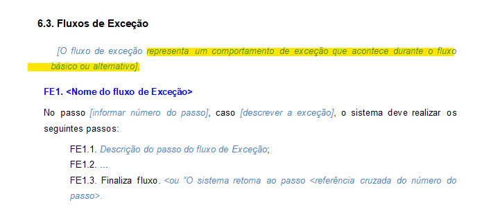 | 06 | Na especificação, os fluxos de exceção representam a reação do sistema a erros ou situações fora do esperado? | MCTIC - CGSI, p. 7 | Sim |