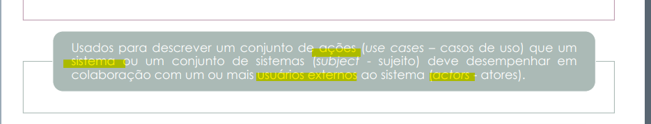 | 07 | No diagrama, a sinalização << system >> indica um software ou hardware? | SERRANO, p. 13 | Sim |