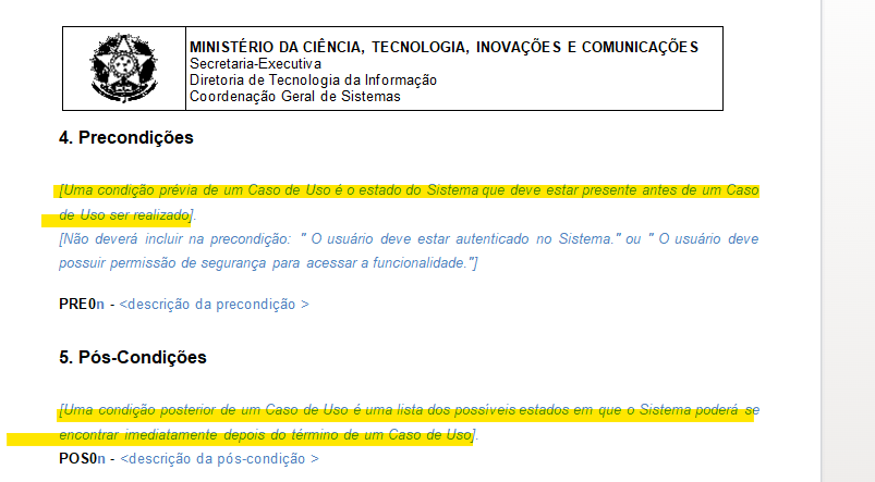 | 04 | Na especificação, há a definição de apenas um fluxo principal para cada caso de uso? | MCTIC - CGSI, p. 5 | Sim |