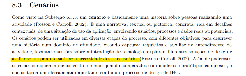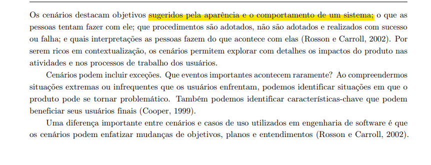 | 04 | Os cenários descrevem interações realistas e significativas com o sistema? | BARBOSA, SILVA, 2021, p. 173 | Sim |