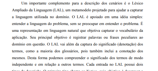 | 01 | O artefato inclui uma definição clara de léxicos e sua importância na engenharia de requisitos? | ZOWGHI; COULIN, 2003, p. 7 | Sim |
