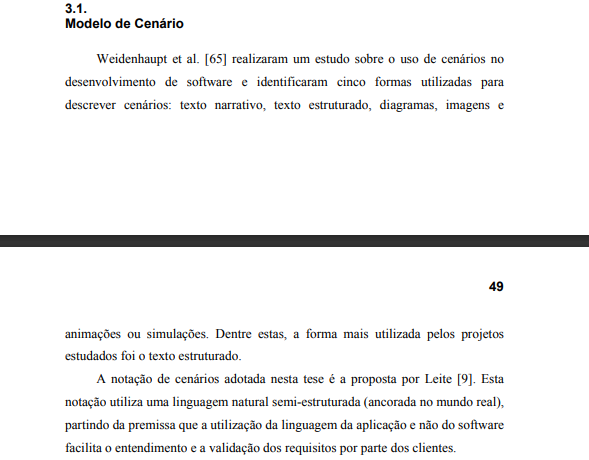 | 08 | O artefato menciona as técnicas utilizadas para desenvolver os cenários? | LEITE, p.48-49 | Sim |
